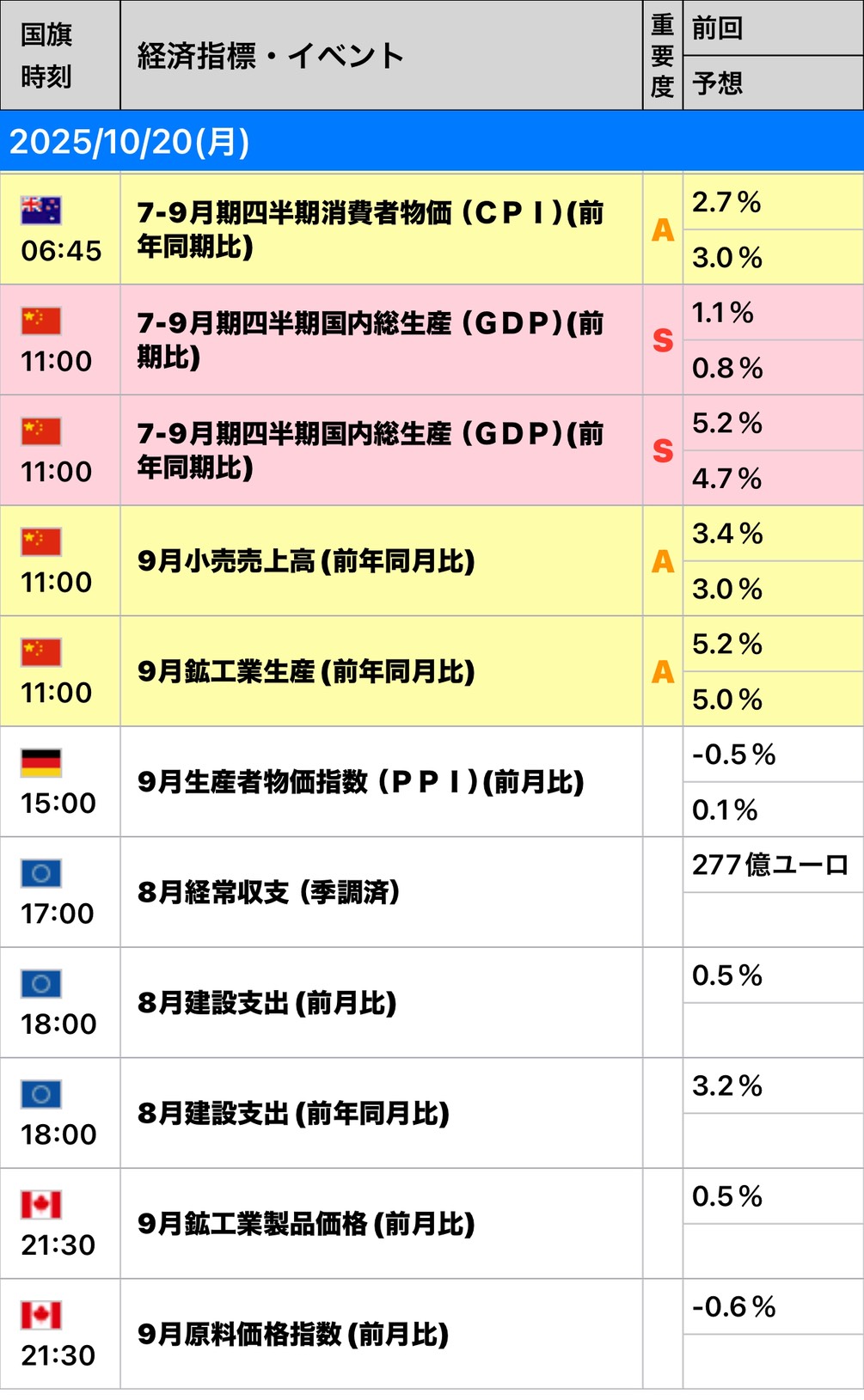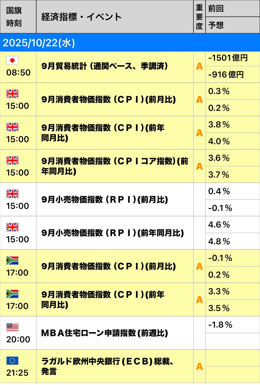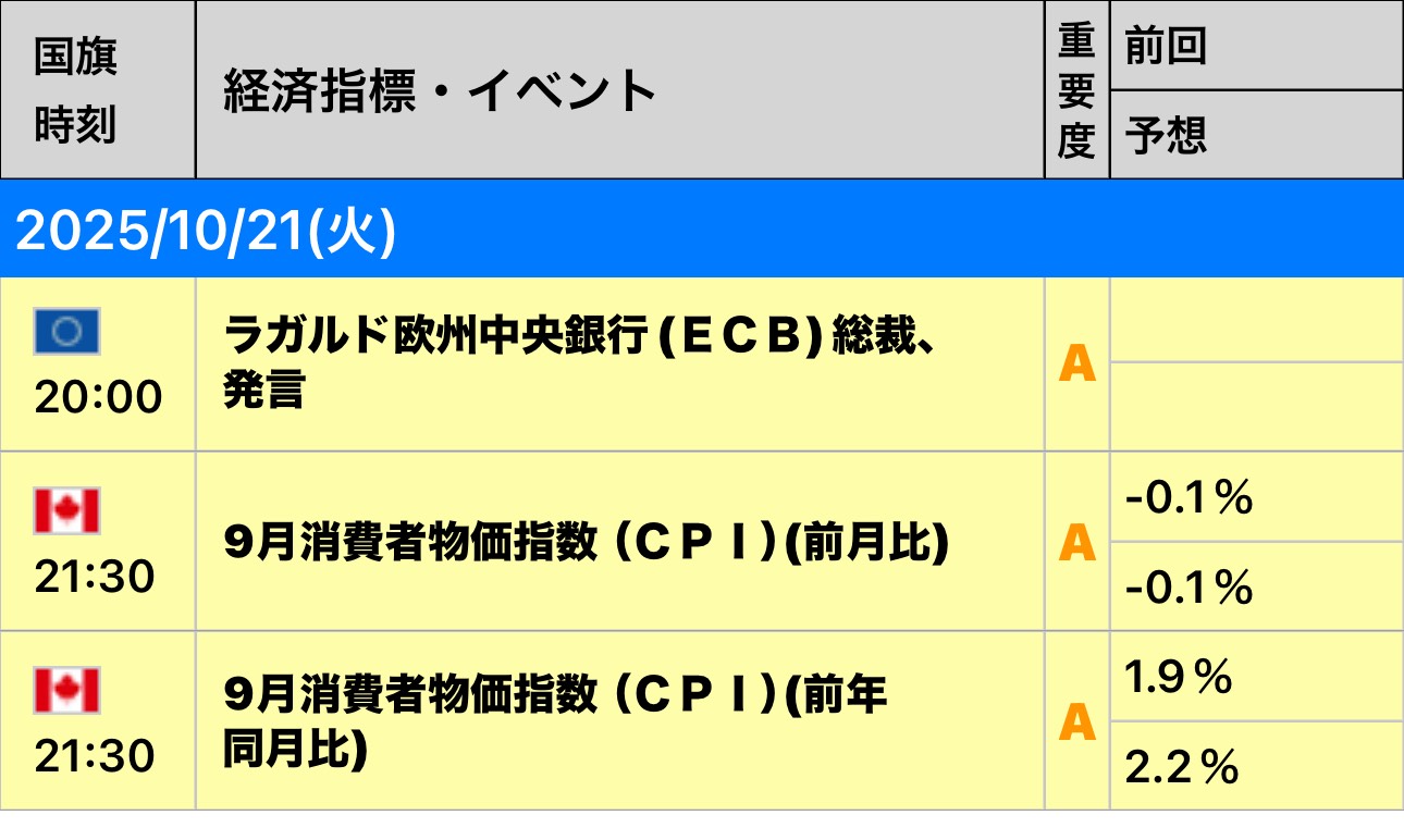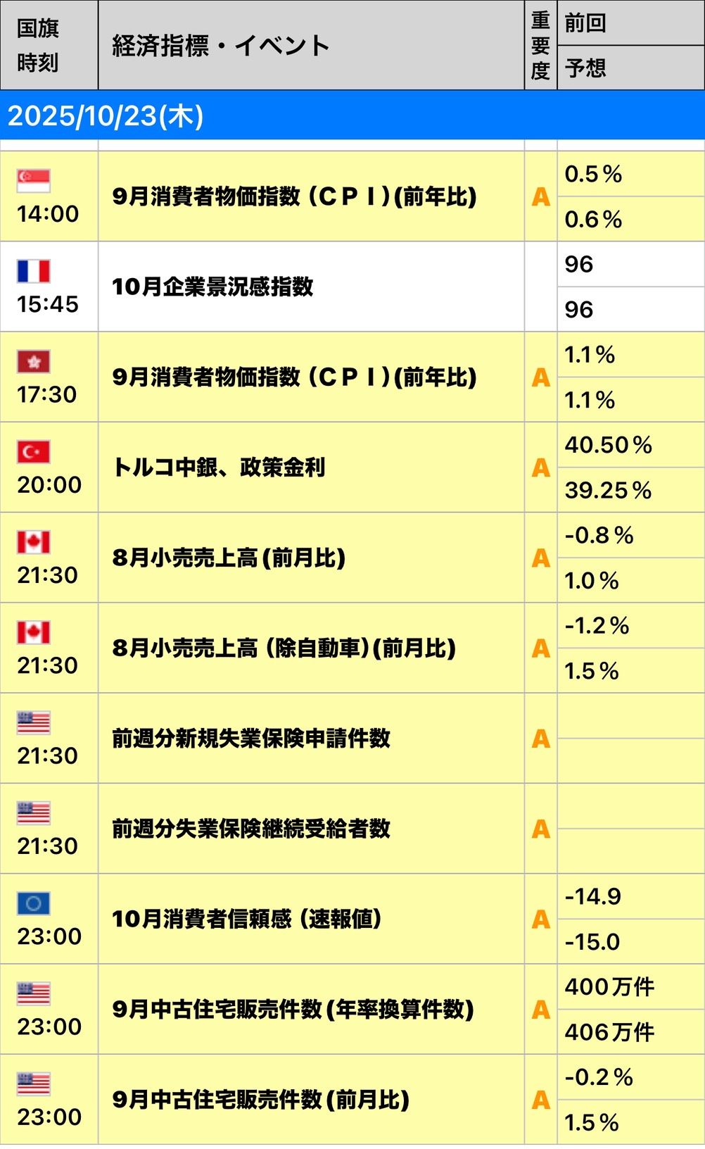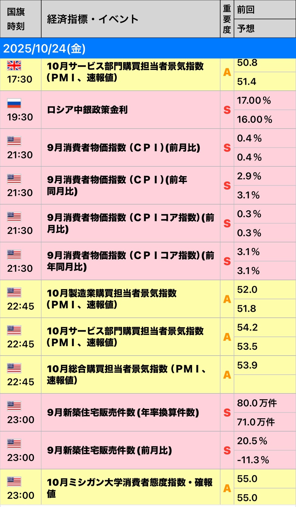 【重要】 今週は 10/24(金)米CPI(発表:約21:30 JST) が予定されています。