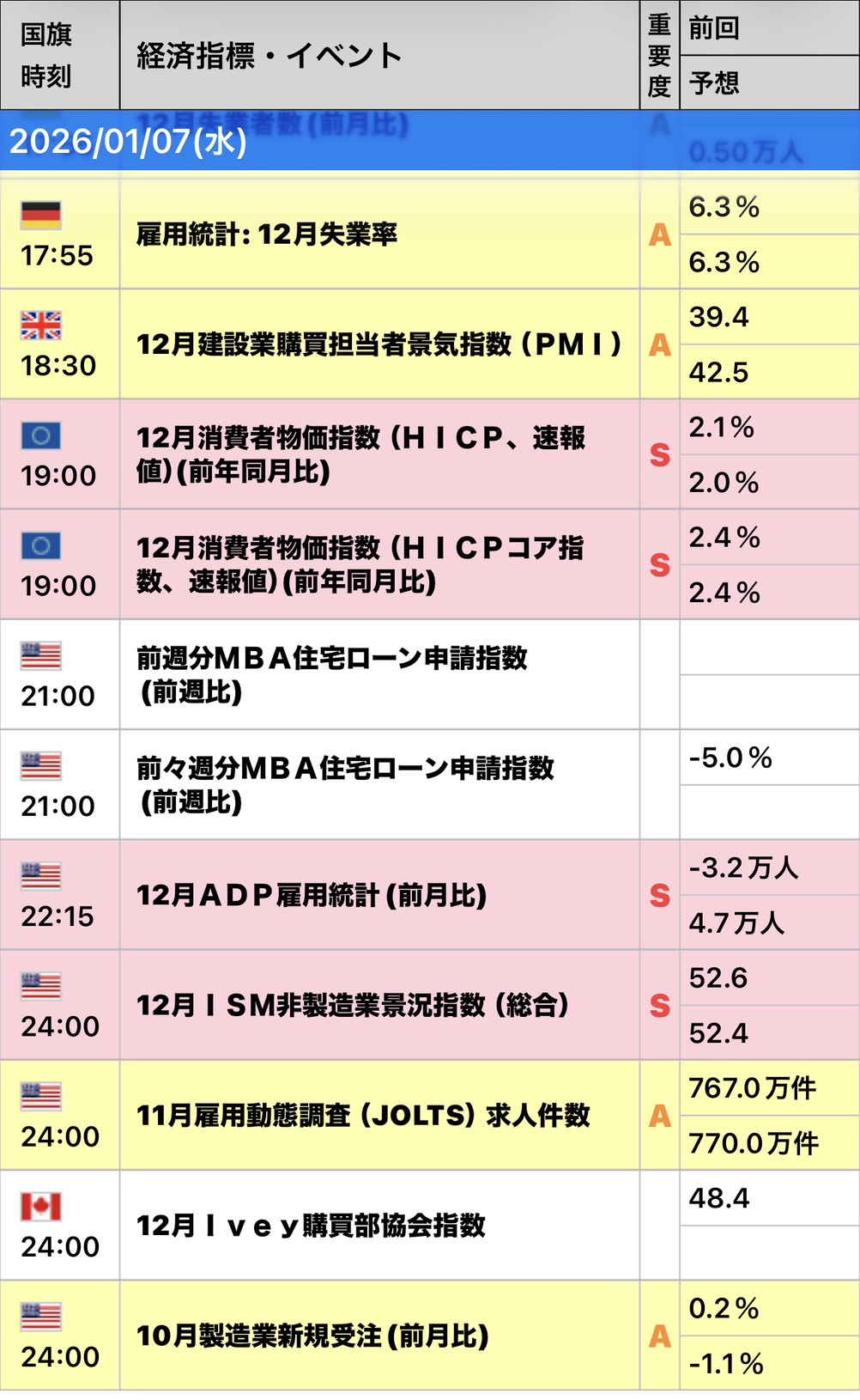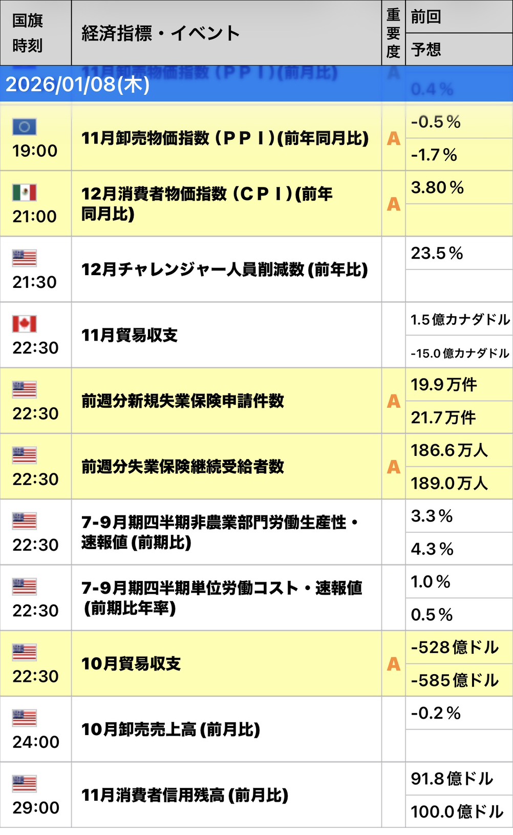 - 1月9日(金):超重要 ⚠️ 米雇用統計(Nonfarm Payrolls) + ミシガン消費者信頼感指数