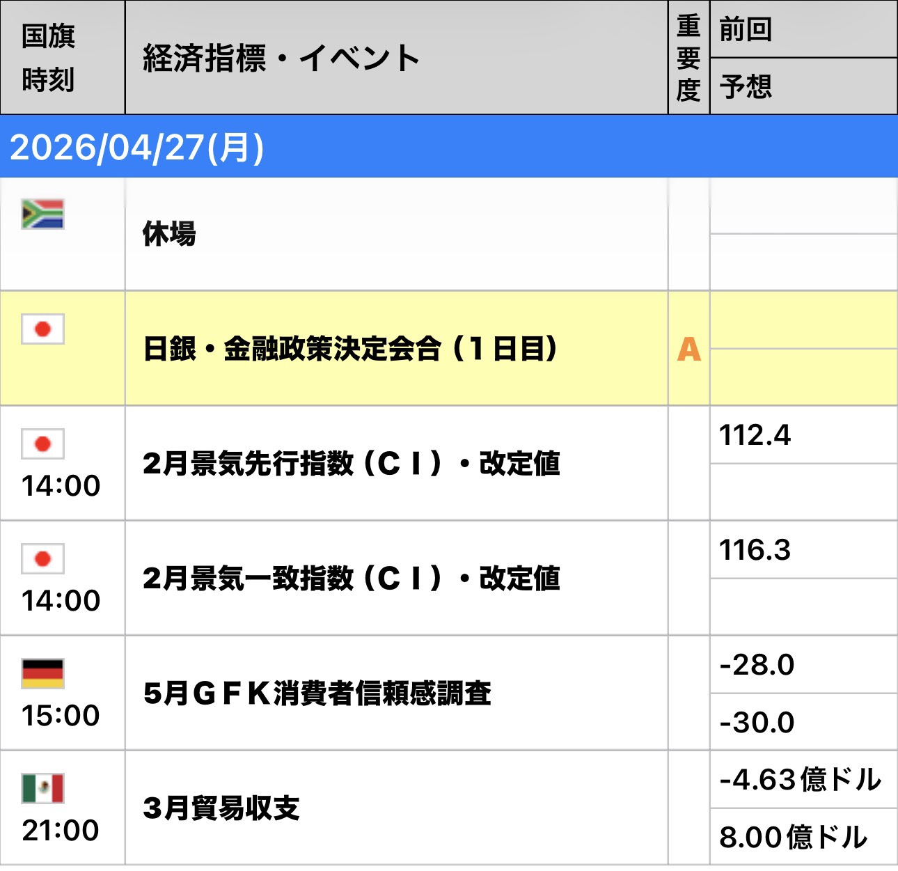 【超危険週】2026年4月27日~5月1日 XM GOLD自動売買 停止推奨時間
