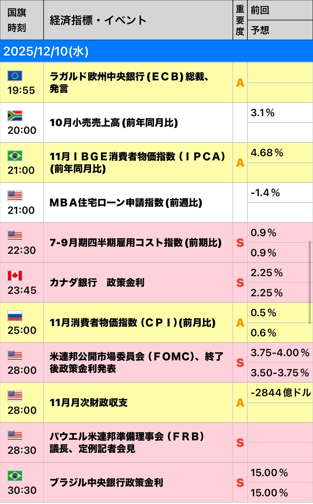 ■ 12月10日(水) — FOMC決定日(発表・議長会見)に要警戒