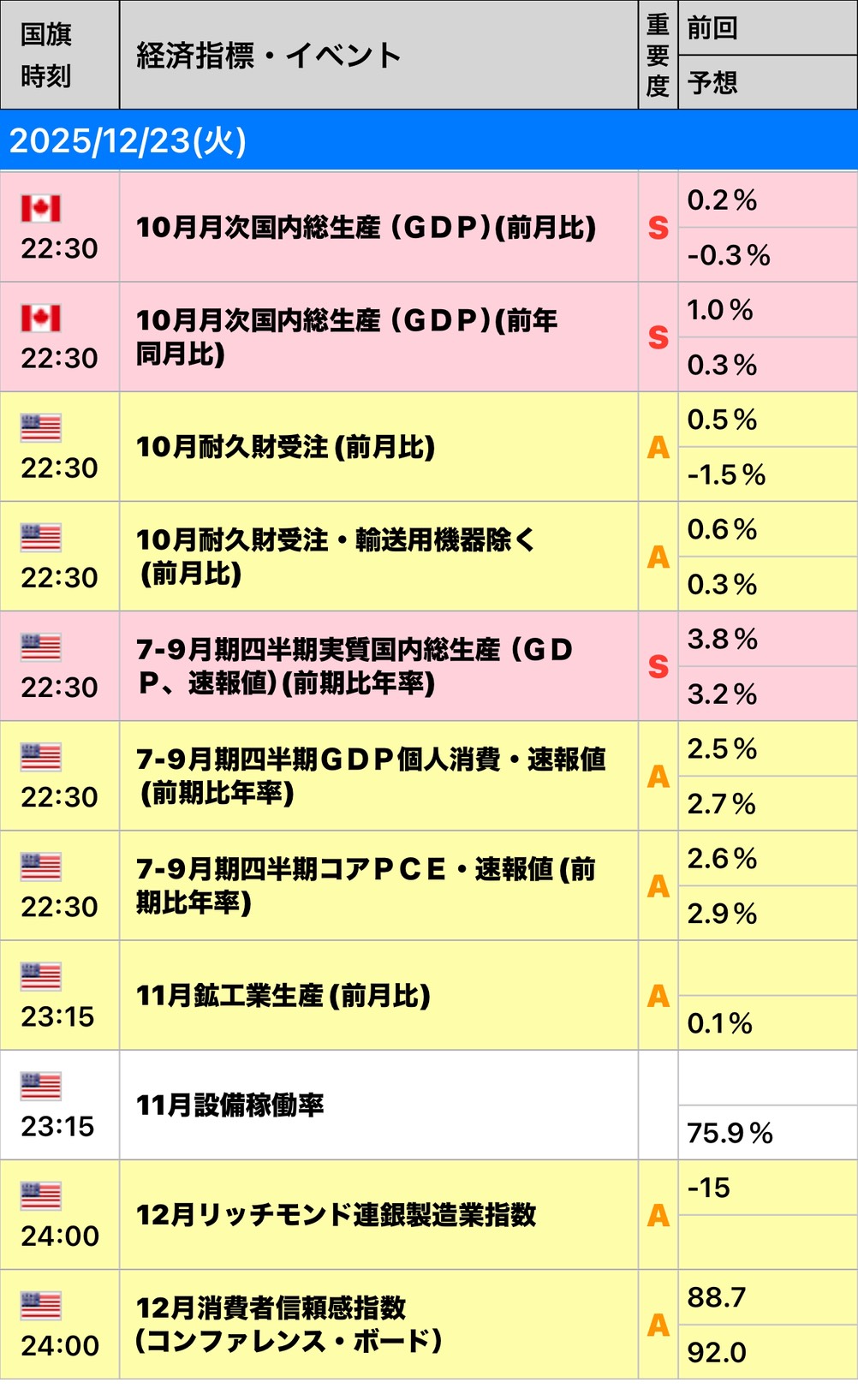 - 📌 12月26日(金)は米市場再開の日ですが、指標は少なく、流動性低のまま推移する可能性があります。