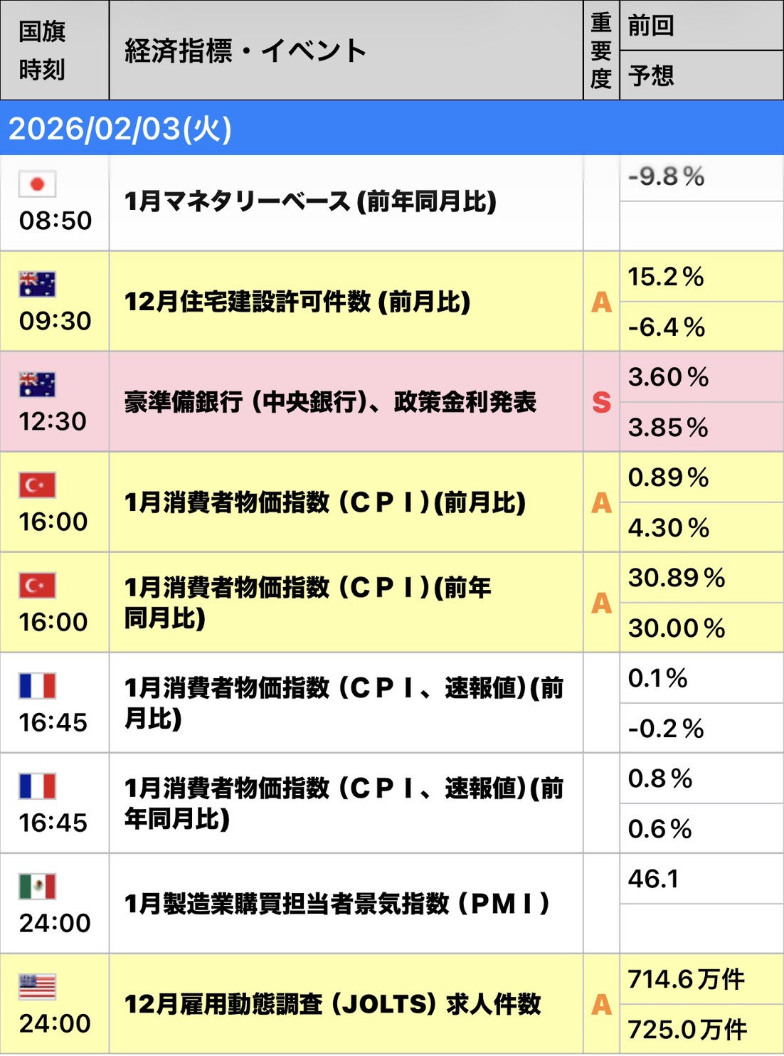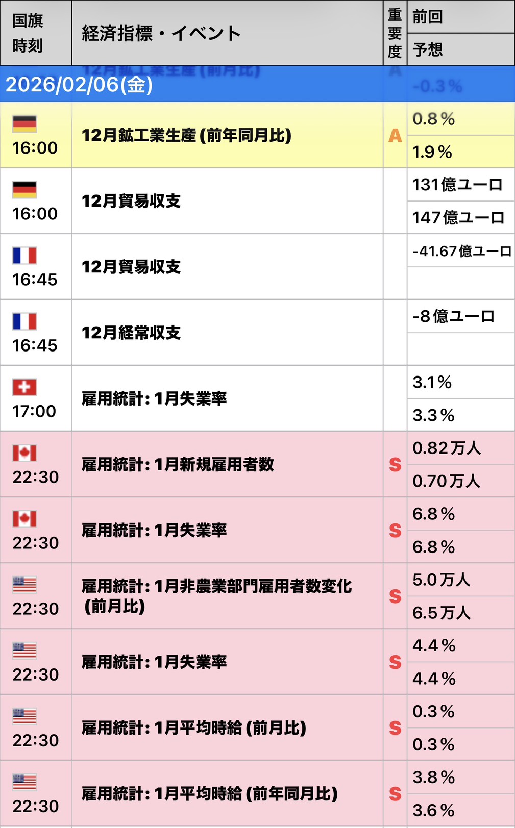 - ④ 2月6日(金)の雇用統計は前後幅広く停止推奨