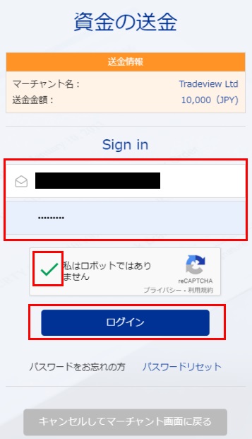 ②TradeViewに登録してあるEメールアドレスを入力します。