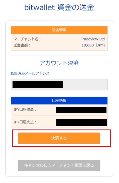 入金額に間違いがなければ「決済する」をクリックして入金完了です。
