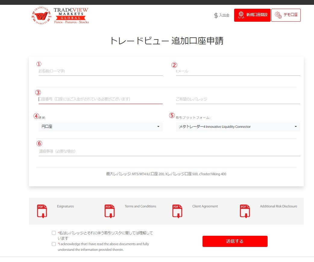 既にTradeviewの口座をお持ちの場合はこちらから(追加口座作成・個人)